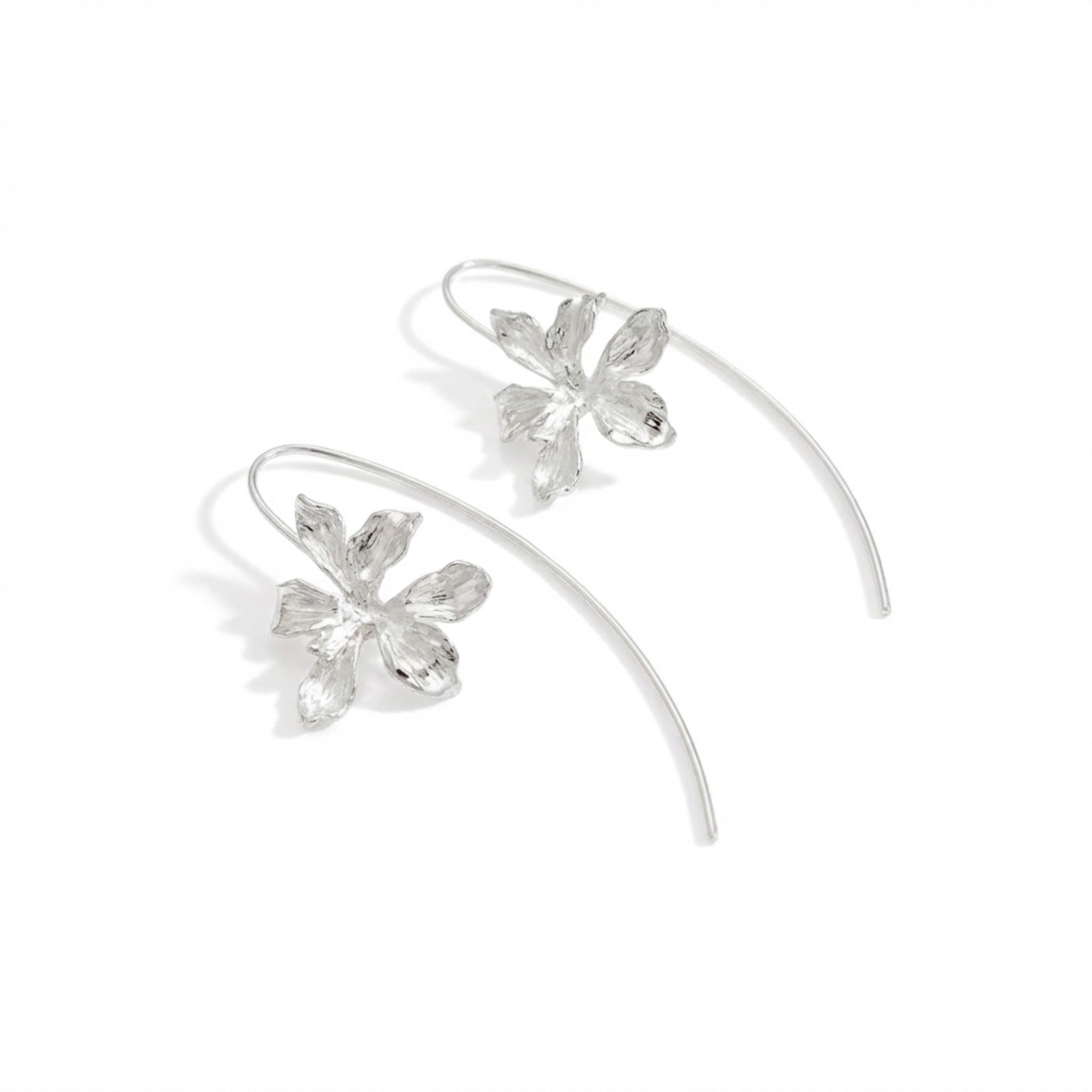 inspired by the iris flower in full light. Set on a fluid silver-tone threader, they catch and reflect with every movement — elegant, luminous, and effortlessly wearable.