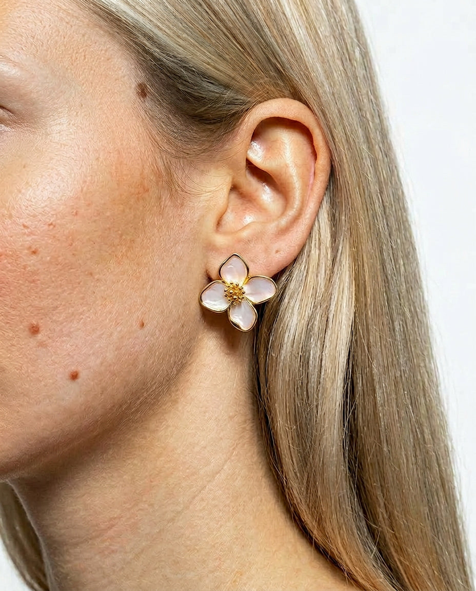 Our jewelry is crafted with gold-plated copper, 925 silver posts, natural stones, and freshwater pearls. Each piece is finished through a hypoallergenic process for comfortable everyday wear.
