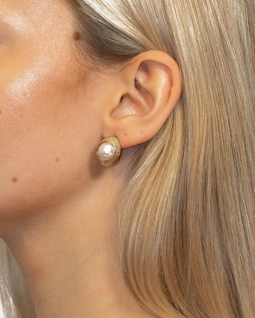 Highball - Vintage-inspired Earrings - Gold, Pearl