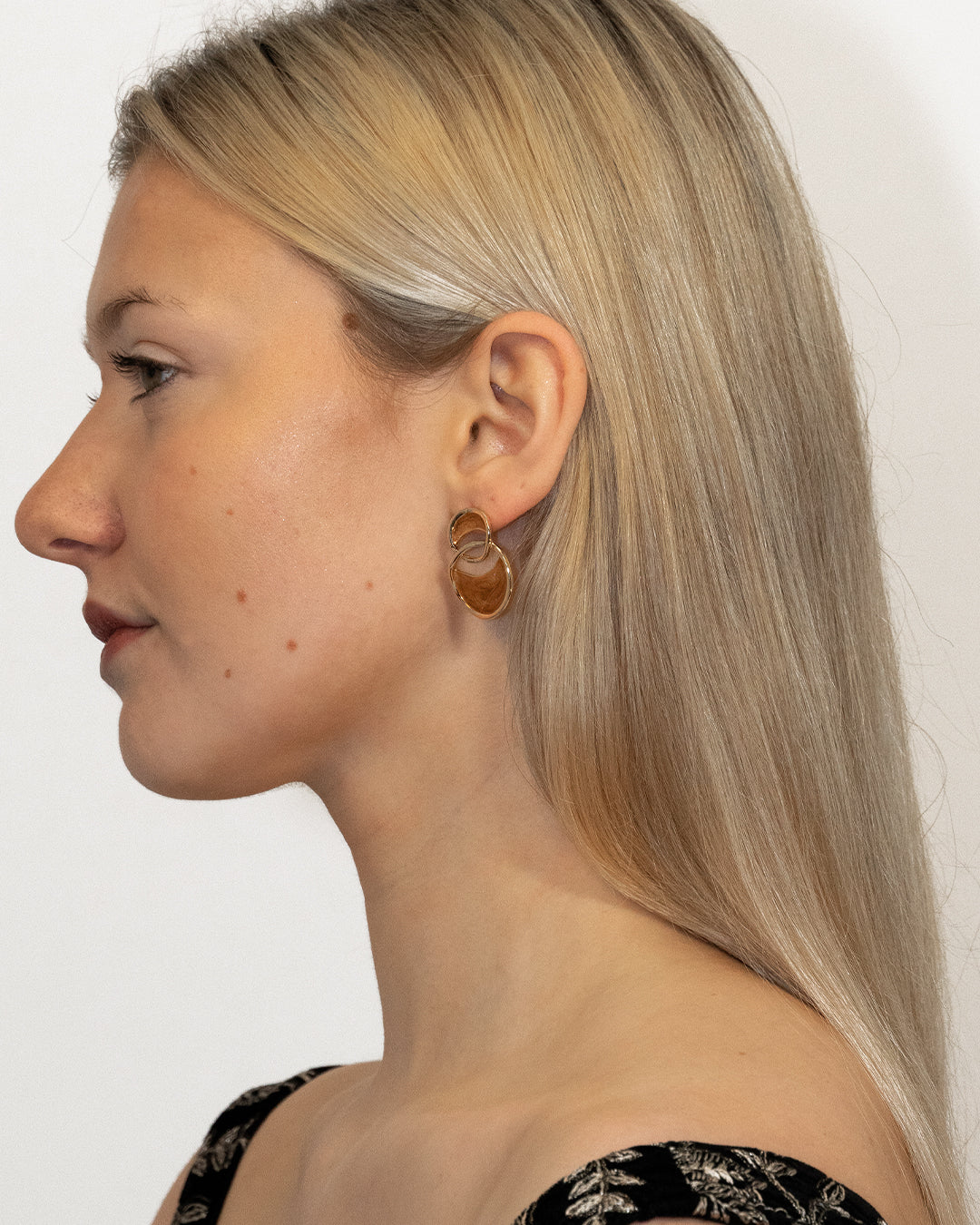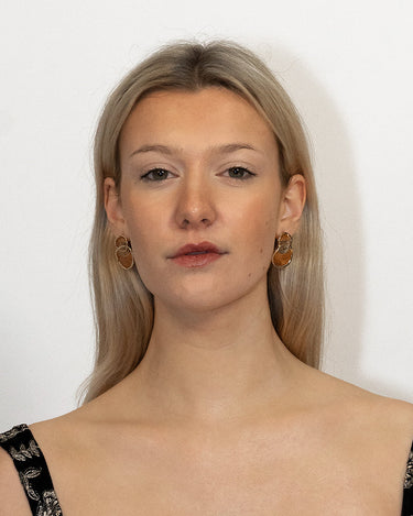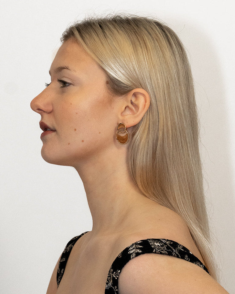 Our jewelry features 14k gold-coated brass.We also incorporate sustainable vegan pearls and ethically sourced stones, ensuring our environmental responsibility