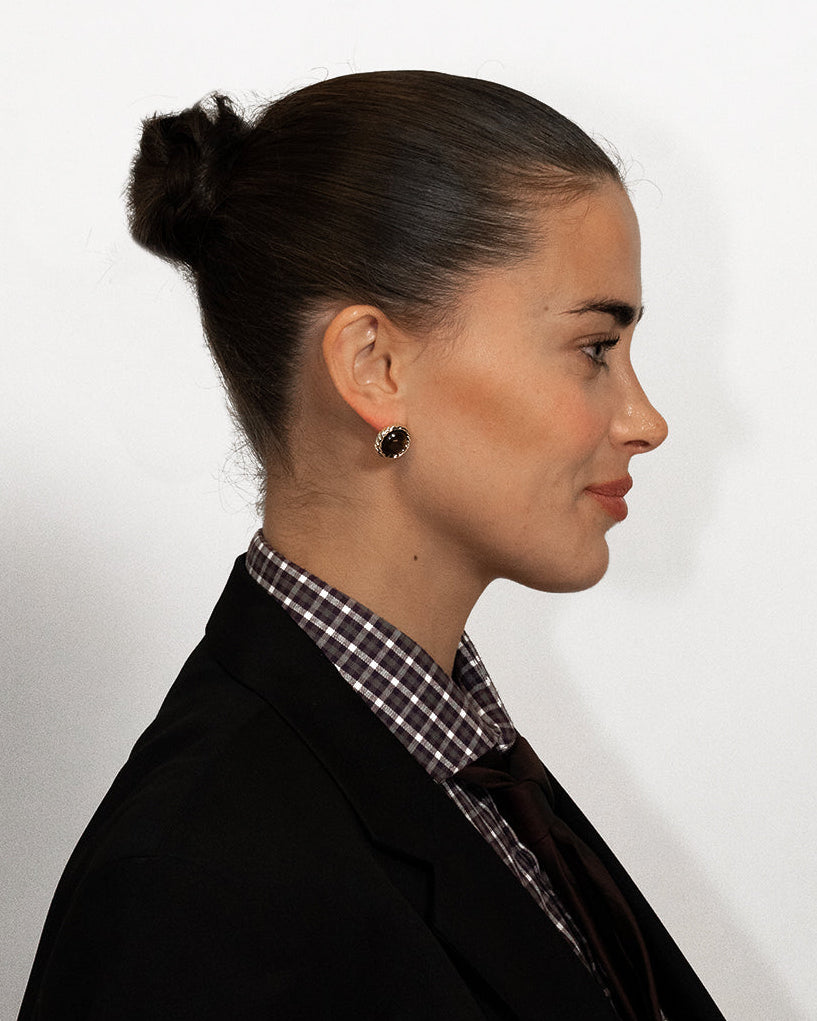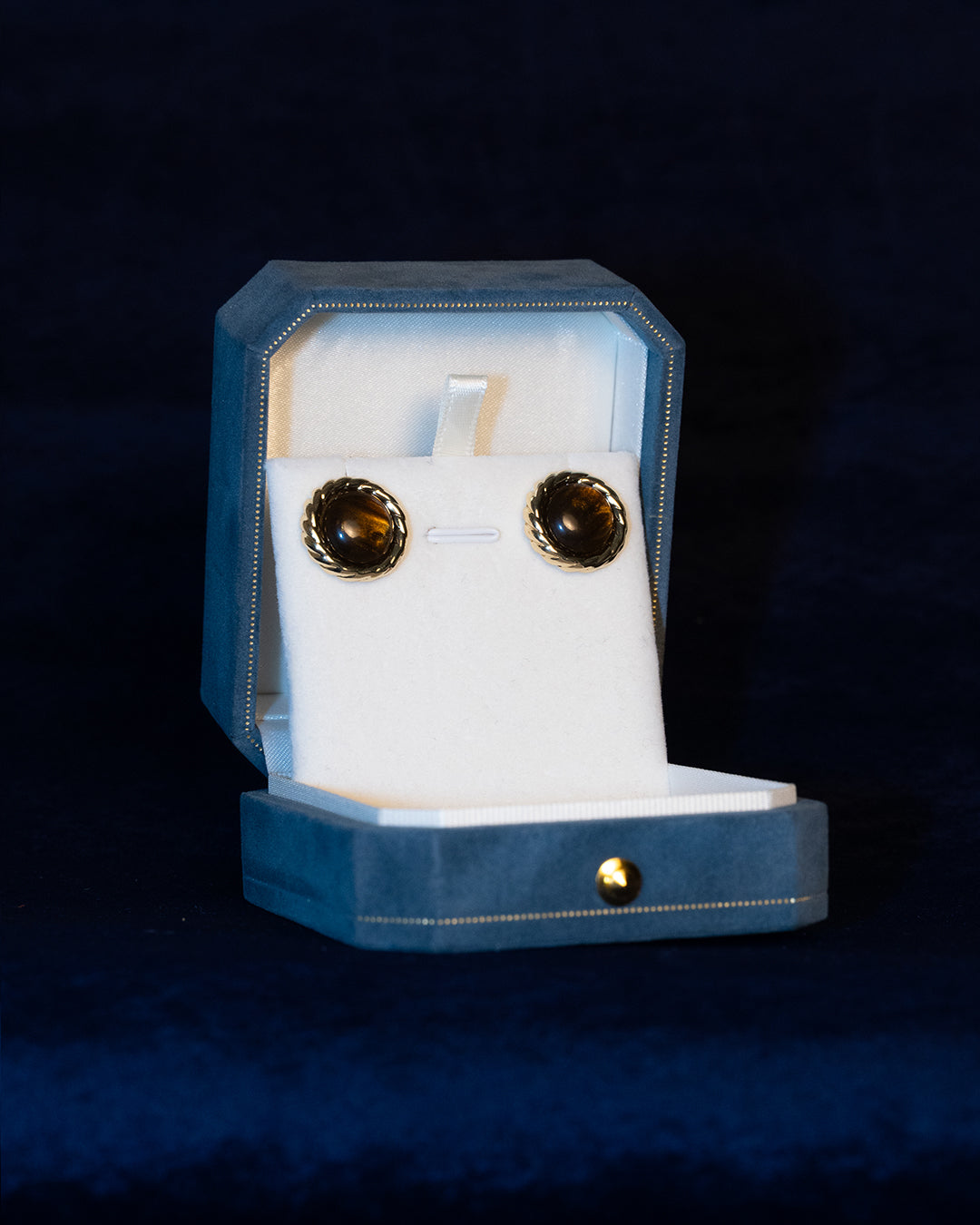 We gather vegan stones with striking patterns that resemble the patterns from a tiger’s fur, crafting earrings that are minimalistic yet fierce; these pieces capture the essence of a tiger’s majestic beauty in a subtle, yet powerful design.